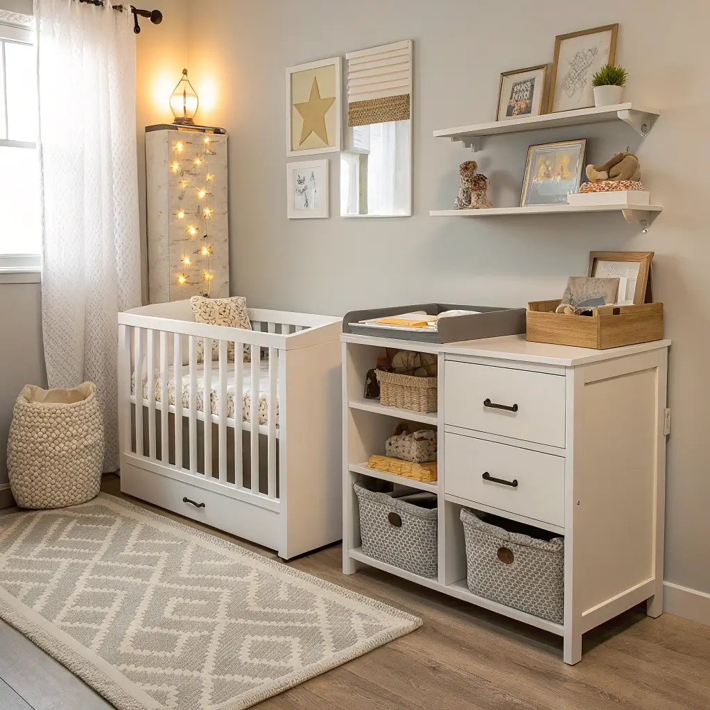My gender-neutral tiny nursery uses nature-inspired colors – sage, cream, and natural wood. Everyone comments on how calming it feels. The neutral palette makes the small space feel larger and more sophisticated than any theme-specific design could.