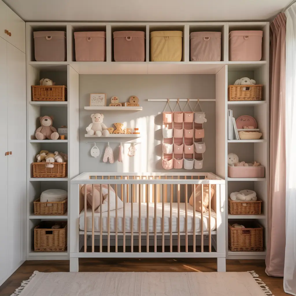 I went absolutely wild with wall-mounted everything. Shelves, hooks, organizers, even a wall-mounted diaper station. My friends thought I was crazy until they saw the finished room. With nothing on the floor except the crib and chair, the space felt huge.