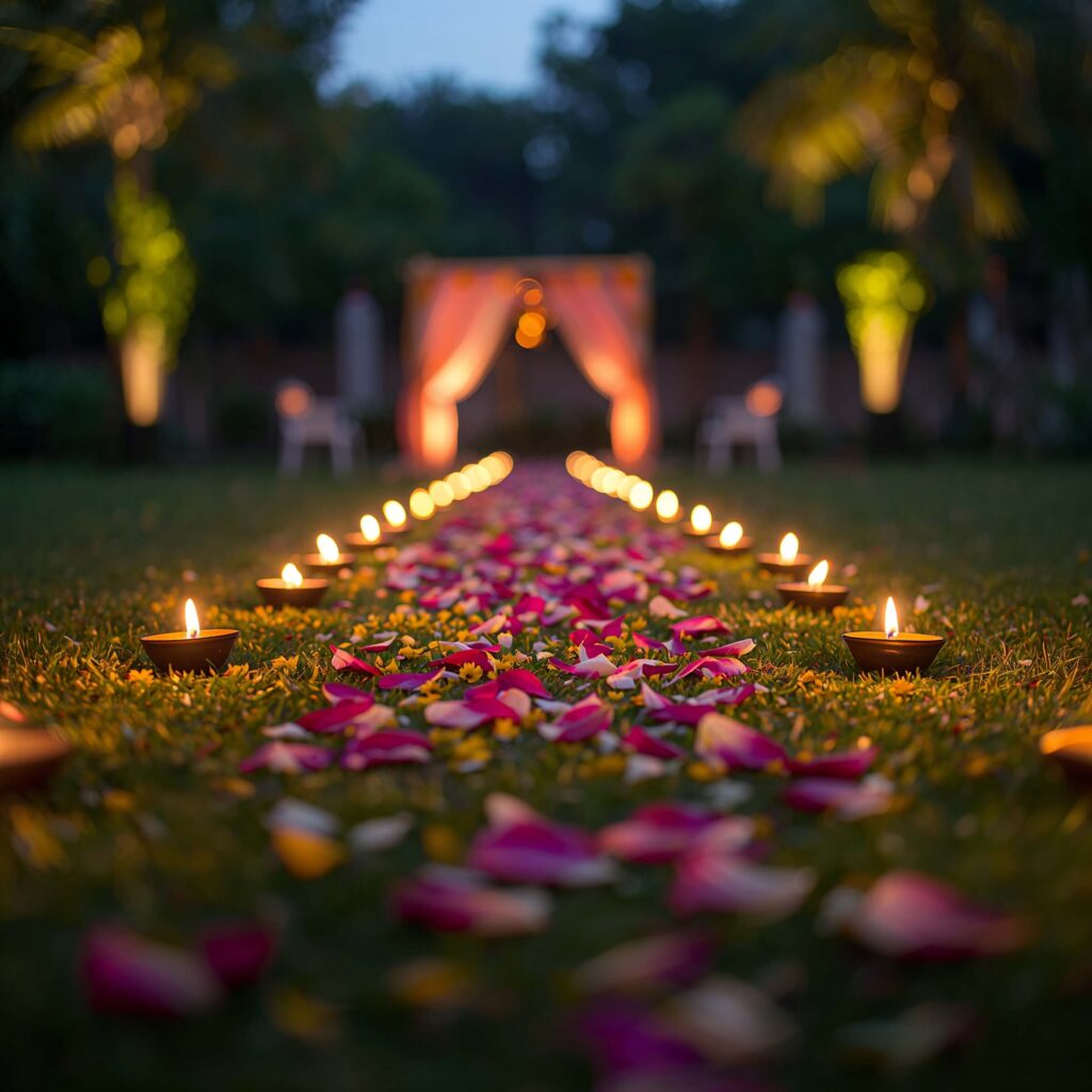 I’ve seen venues where they created elevated platforms for diyas, keeping them beautiful but safely out of reach. Smart thinking that doesn’t compromise on aesthetics!