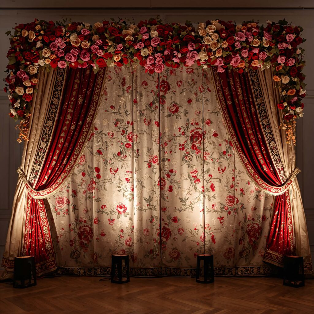 Choose fabrics that tell your story. Maybe it’s Gujarati mirror work because that’s your heritage, or Kashmir embroidery because that’s where you got engaged. These backdrops become conversation starters and cultural bridges.
