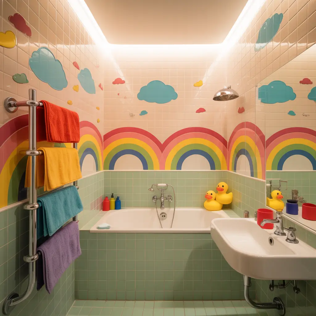 My friend’s rainbow bathroom has become the most-photographed room in her house. She used white subway tiles with rainbow grout, hung rainbow towels on hooks, and added color-coded storage for each kid. Three boys, one girl, and everyone’s obsessed with it.