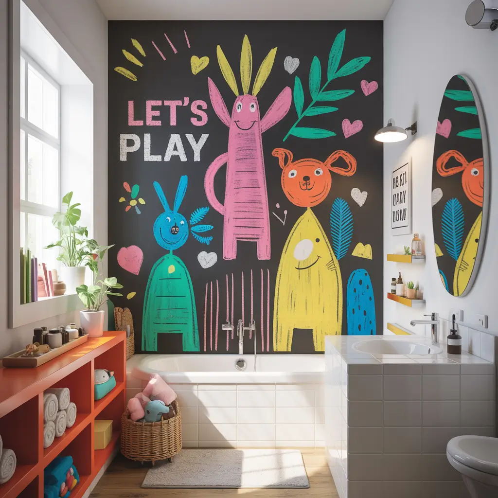 Saving what might be my favorite for last: chalkboard walls turn bathrooms into creative spaces that literally change every day. Kids can personalize it, parents can write reminders, and everyone feels involved in the space. Plus, it’s genuinely gender-neutral because the content changes constantly.