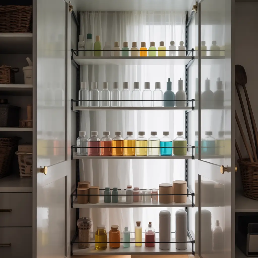 I use expandable tiered shelves (like spice racks) for cleaning products. The stepped design means every bottle stays visible and accessible. No more knocking over five things to reach one item in the back. I have three tiers on one shelf – it tripled my storage capacity in the same space.