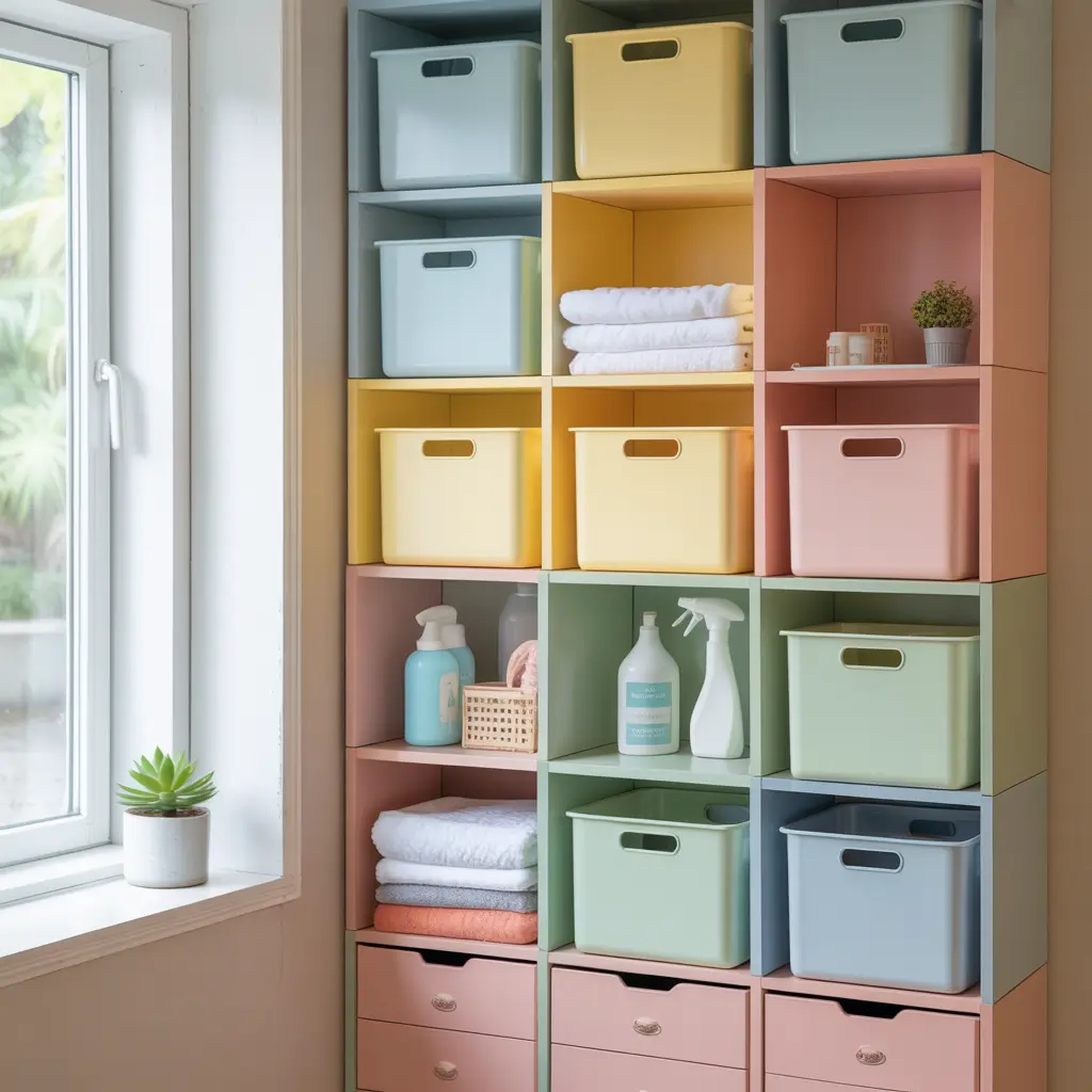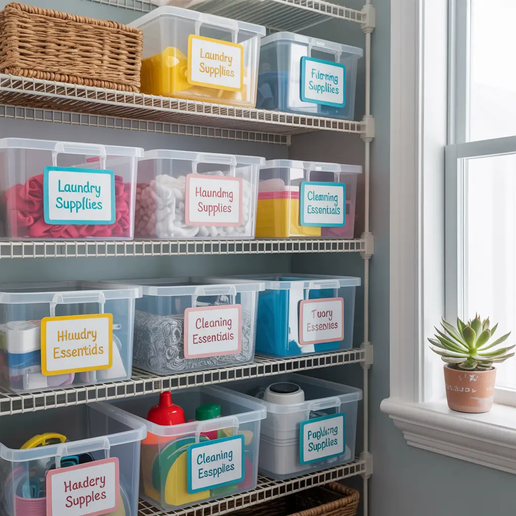 Clear bins changed everything about how I organize cleaning supplies. Being able to see what’s inside without opening every container saves so much time and frustration. I use six matching clear bins, each dedicated to a specific category.