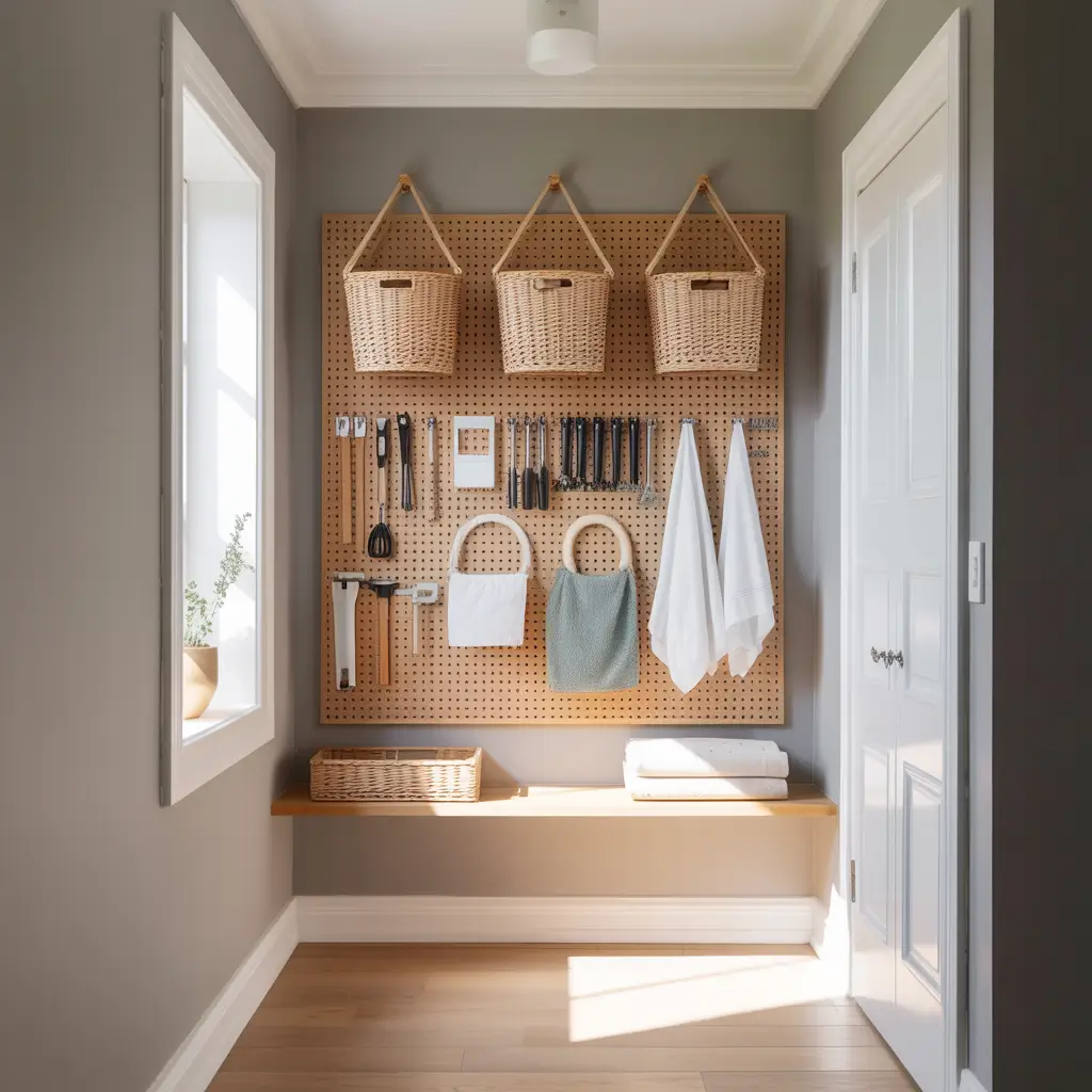 Installing pegboard felt very garage-workshop, but honestly? It’s the most versatile storage solution in my utility closet. I can rearrange hooks and holders whenever my storage needs change, which happens more than I expected.