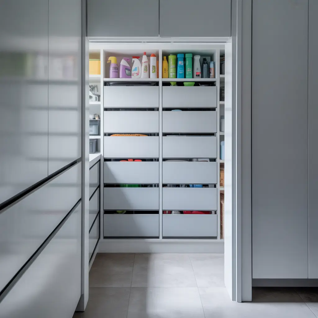 Heavy stuff belongs at the bottom, but that doesn’t mean it should be inaccessible. I installed sliding drawer units at floor level, and now I can actually reach those giant detergent bottles without throwing out my back.