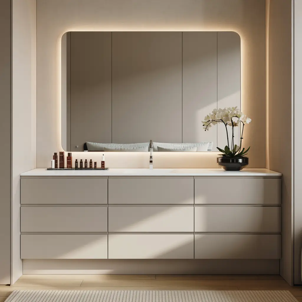 The psychology of a clear vanity surface can’t be overstated. Starting your day without visual clutter makes morning routines feel calm and intentional rather than chaotic. IMO, hidden storage is the secret to maintaining sanity in small spaces.