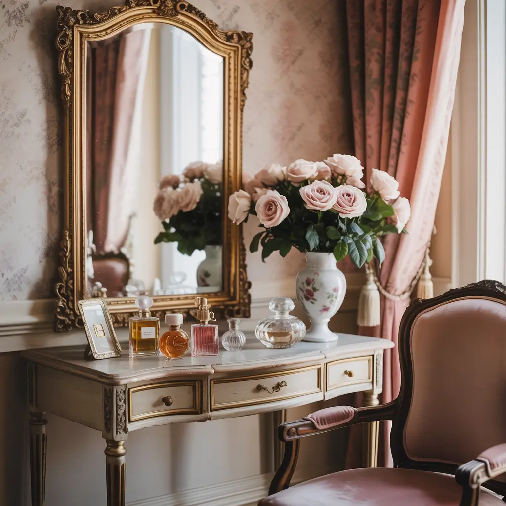 Feminine Pink Accent Vanity Area