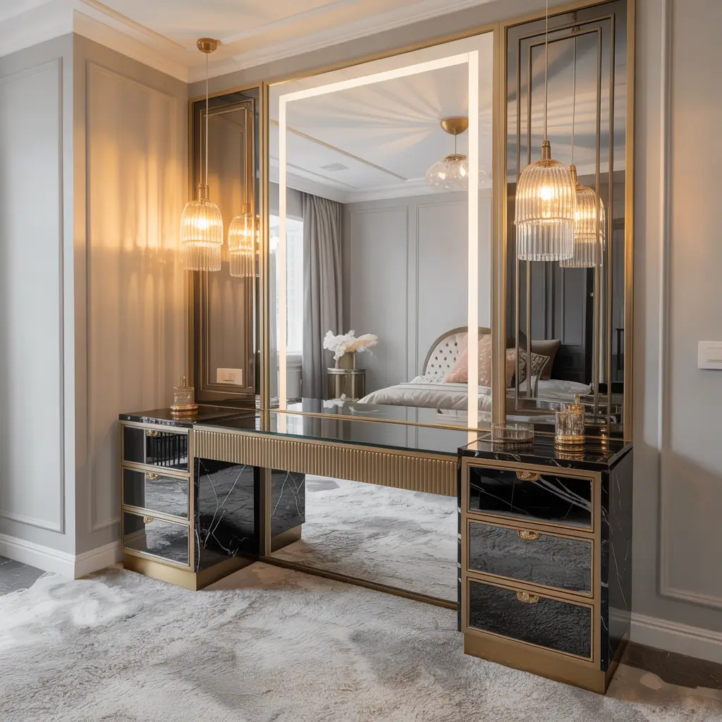 Nothing says luxury quite like marble, and IMO, a marble-topped vanity brings instant sophistication to any bedroom. Real marble or quality marble-look surfaces add that touch of elegance that makes your morning routine feel like a spa experience.