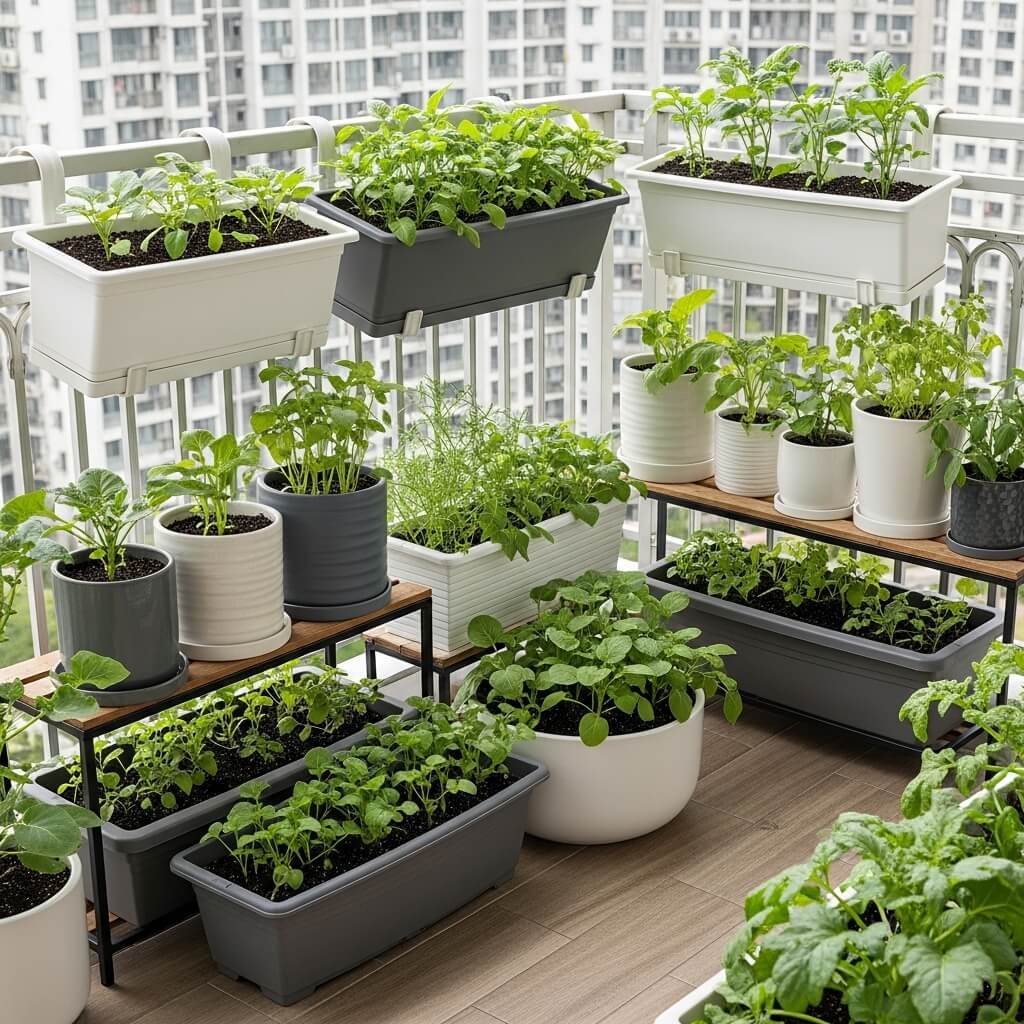 Weight becomes a real concern when you’re gardening on a balcony. Wet soil is heavy—a large container can easily weigh 100+ pounds. Check your balcony’s weight limits before going crazy with containers.
