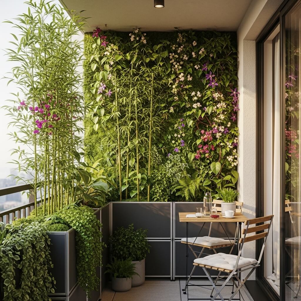 9. Compact Balcony Privacy Green Wall Setup