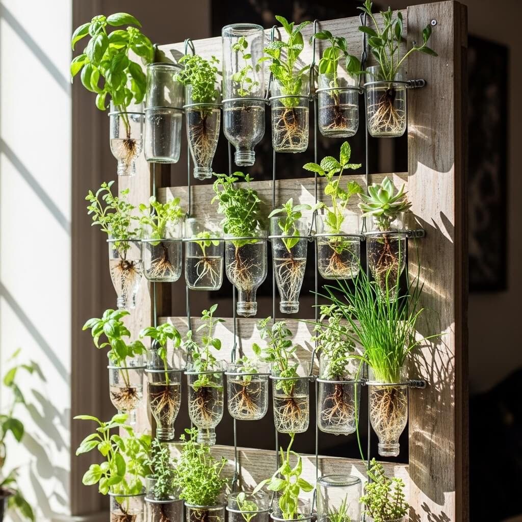 Last but absolutely not least, let’s talk about recycled glass bottle vertical gardens. These are eco-friendly, visually striking, and give you excellent bragging rights at dinner parties.