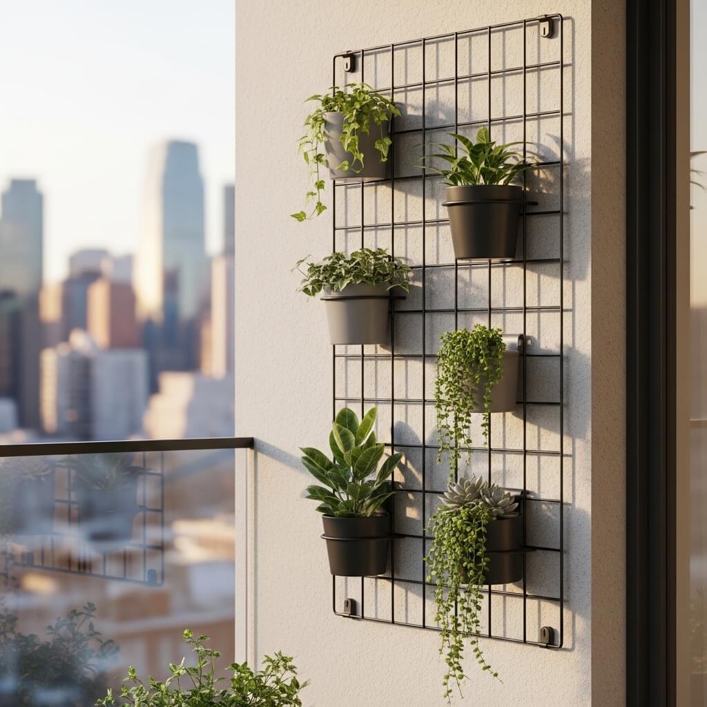 3. Modern Metal Grid Balcony Plant Wall