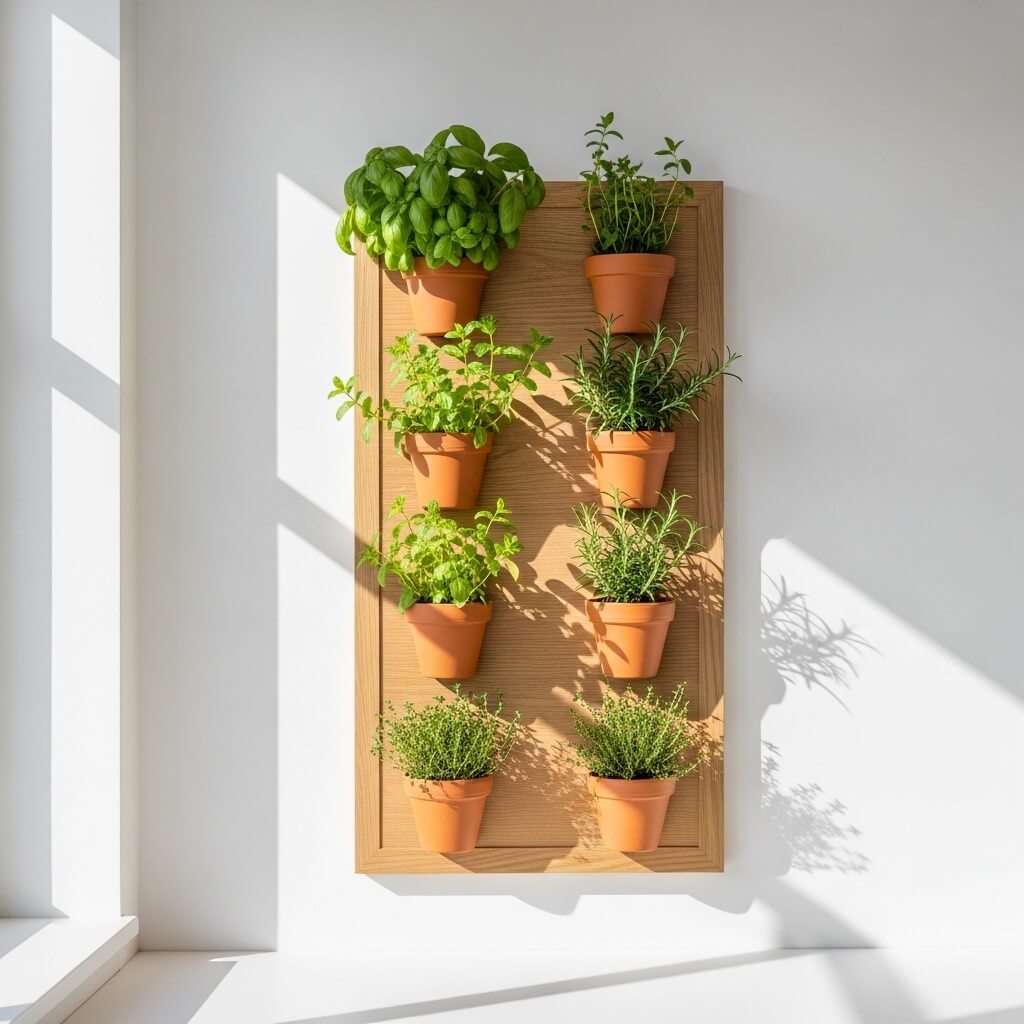 1. Minimalist Wooden Frame Vertical Herb Garden