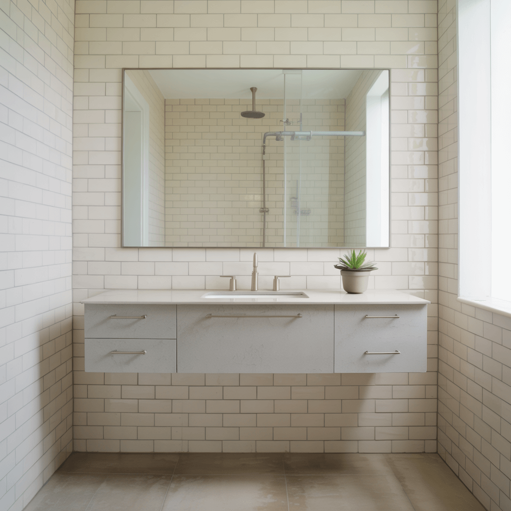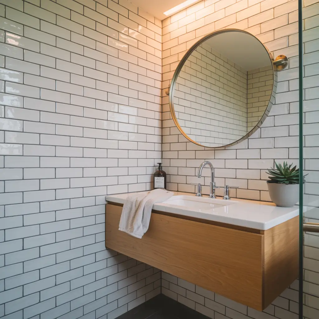 In my own bathroom renovation (yes, I practice what I preach), I paired white vertical subway tiles with a walnut floating vanity. The combination of vertical movement and horizontal clean lines creates this perfect balance that feels both modern and timeless.