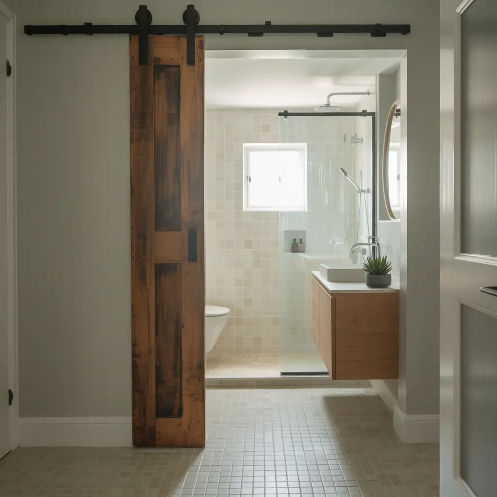 I learned about sliding doors the hard way when my traditional door kept banging into everything. Installing a barn-style sliding door freed up 9 square feet of usable space – in a 40-square-foot bathroom, that’s huge! Plus, the sliding mechanism became a design feature rather than something to hide.