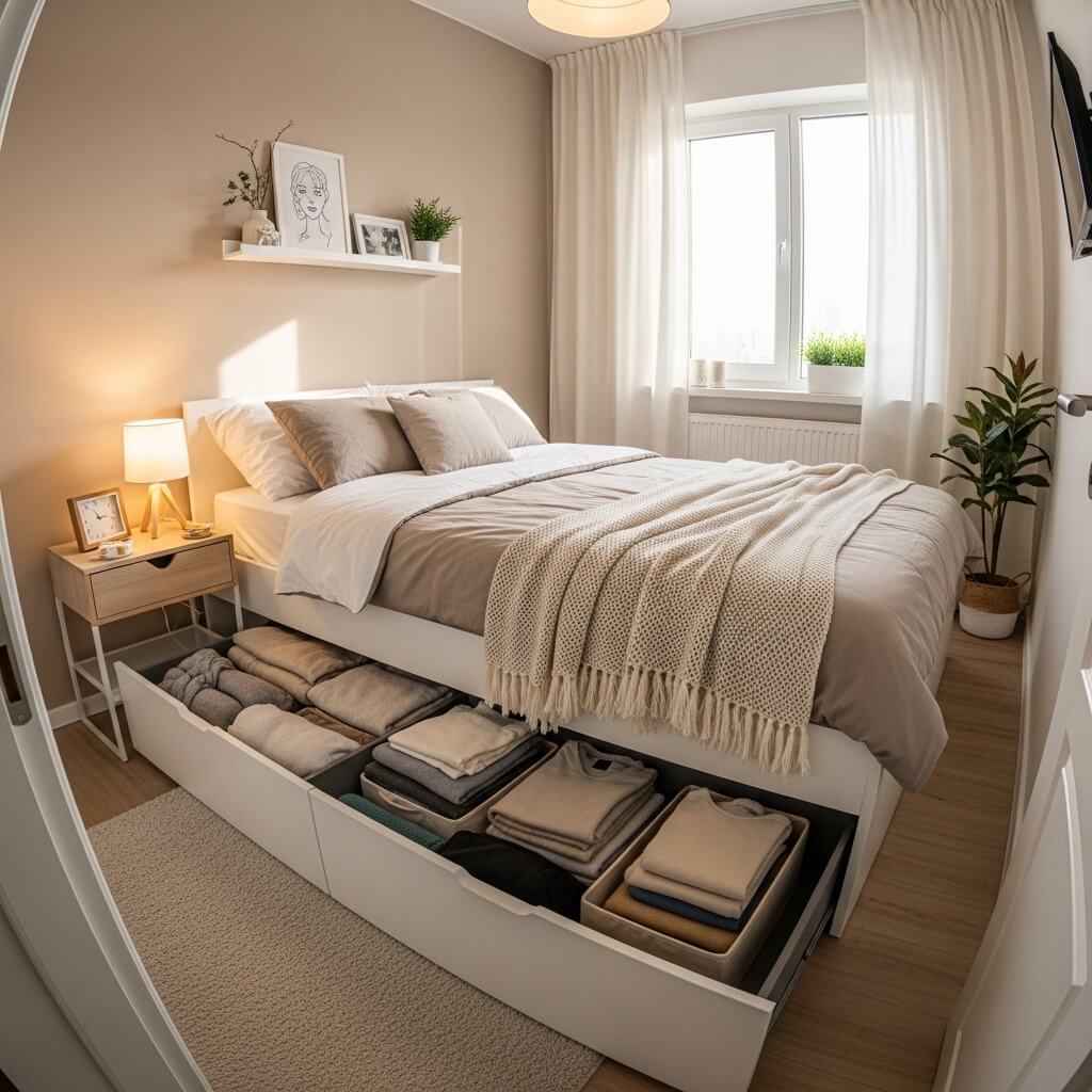 Let’s start with the most underrated real estate in any bedroom — the space under your bed. Seriously, why are so many people just letting that space collect dust bunnies and forgotten socks? If you’ve got a tiny bedroom, the area beneath your bed is basically a goldmine you haven’t cashed in yet.