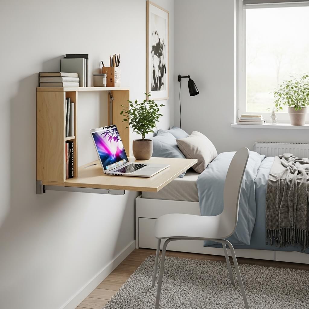 Here’s a question: do you actually need a full-sized desk in your tiny bedroom, or do you just think you do? Because if you’re working from your bed half the time anyway, a wall-mounted foldable desk might be exactly what your space needs.