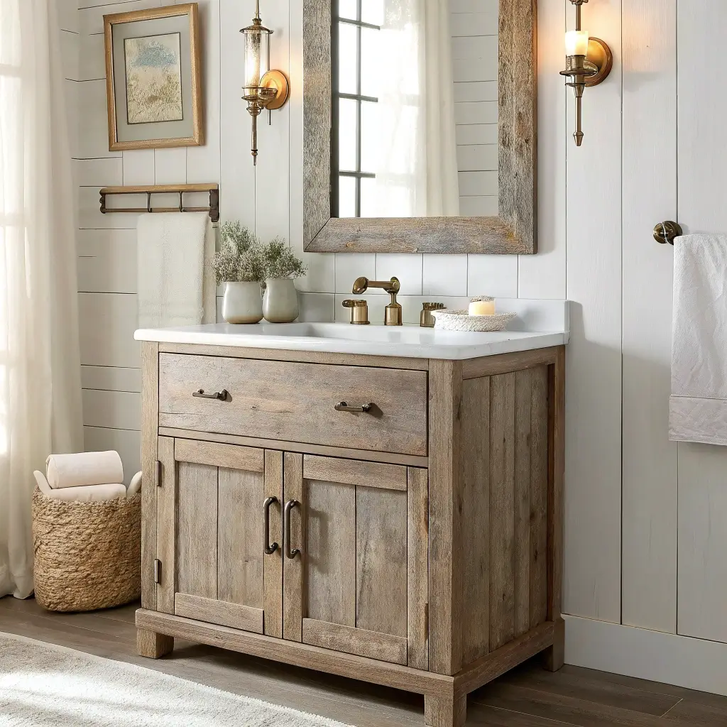 1. Rustic Farmhouse Vintage Bathroom Vanity Ideas
