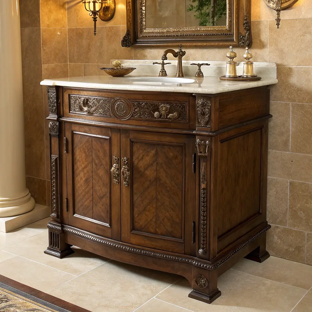 Antique wood vanities deserve special treatment. The solid oak washstand I restored was built in 1890, and that old-growth wood quality simply doesn’t exist in modern furniture. Every ring in that wood represents years of growth when forests were still virgin.