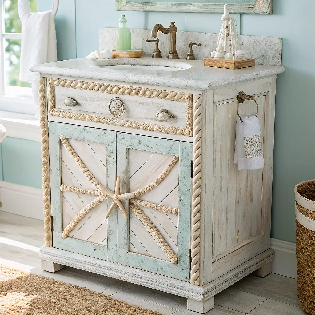 Coastal vintage vanities capture that relaxed beach house feeling without resorting to seahorse drawer pulls. My weathered pine vanity looks like it spent decades in a beach cottage (it actually came from a Connecticut farmhouse, but who’s checking?). The sun-bleached finish and simple lines evoke oceanside living perfectly.