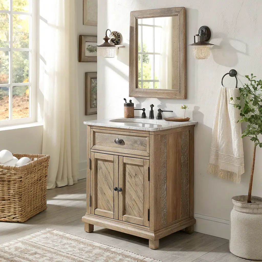 Rustic farmhouse vintage vanities bring that cozy, lived-in feeling that makes bathrooms feel like home instead of hotel rooms. My 1940s farm table-turned-vanity still has the original paint drips from decades of use, and honestly? Those imperfections are what make it perfect.