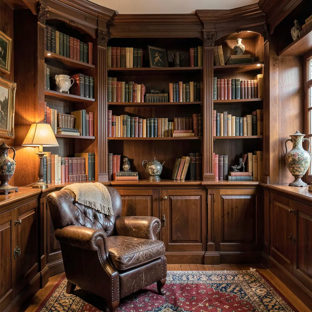 - Mix in leather-bound books for richness