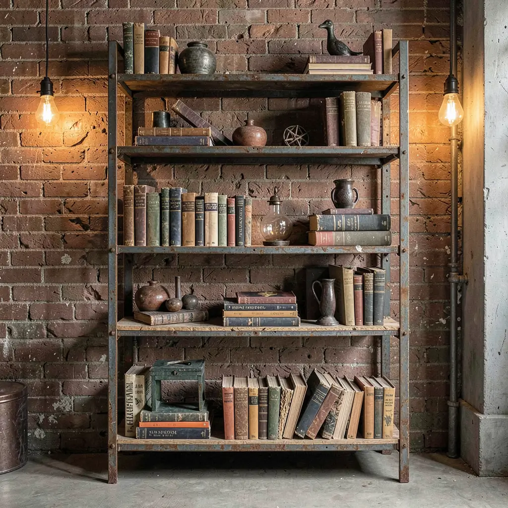 Retro industrial vintage bookshelves bring that converted loft aesthetic without requiring you to actually live in an old factory. My first industrial piece came from a closing print shop – steel shelving with original grease stains that I wouldn’t dare clean off.