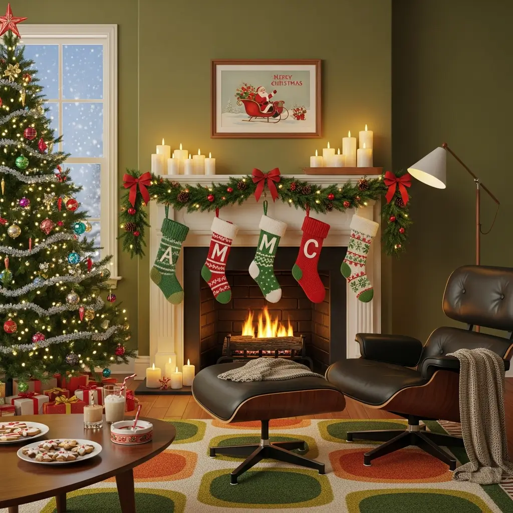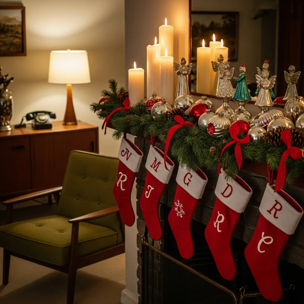 The 1950s mantle was basically the Instagram-worthy focal point of its time (minus the Instagram, obviously). Families arranged their stockings with military precision, often using matching sets in felt or knit patterns.