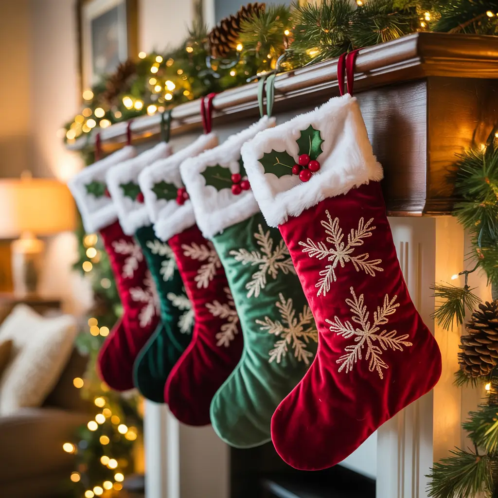 Vintage stockings and garlands provide continuity throughout your decorating, tying different areas together with consistent style.