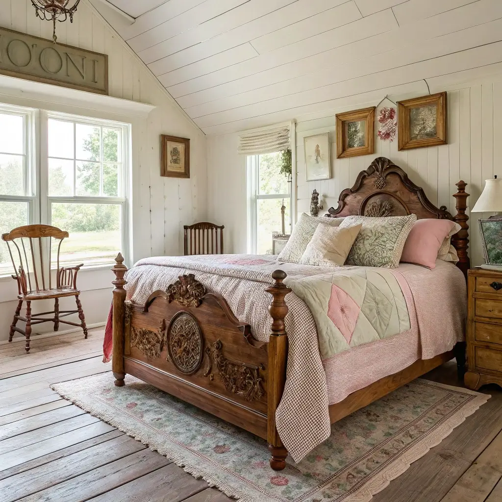 Antique decor pieces inject personality and history into vintage farmhouse bedrooms. These collected treasures become conversation starters, connecting your space to eras long past.