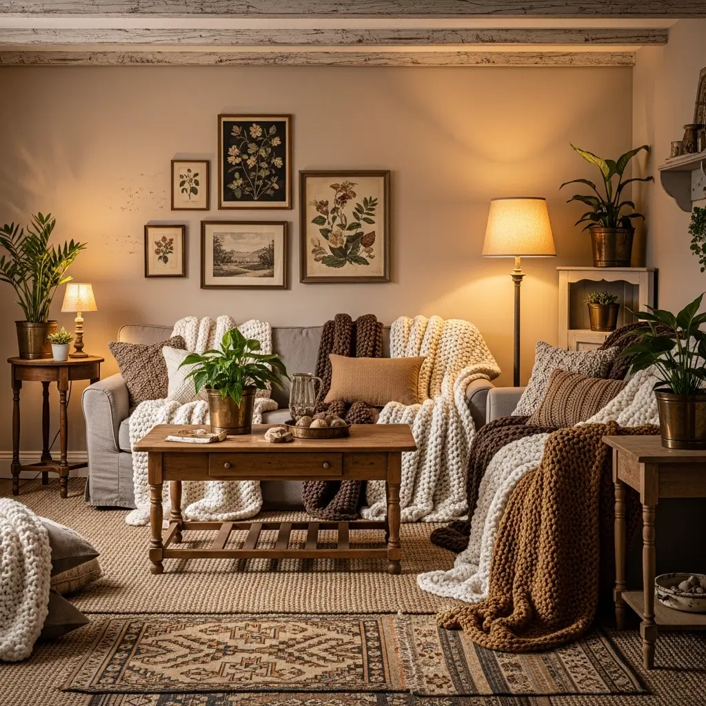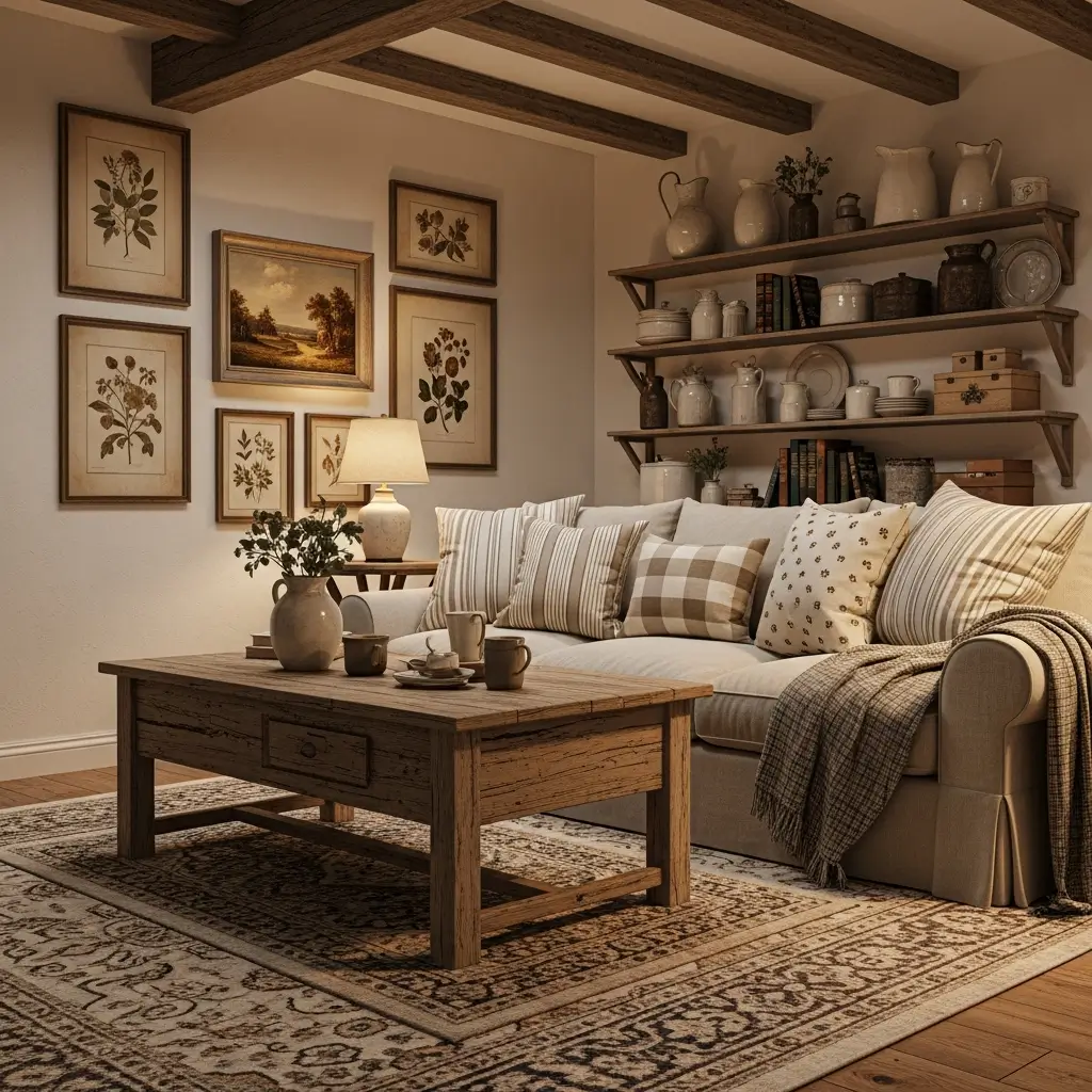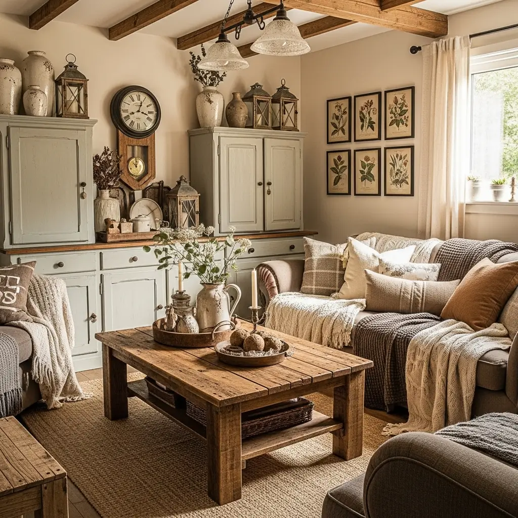 Warmth in vintage farmhouse living rooms comes from layering textures, using warm lighting, and choosing pieces that invite touch. My space feels cozy because every surface has texture, every corner has soft lighting, and everything looks like you’re allowed to actually use it.
