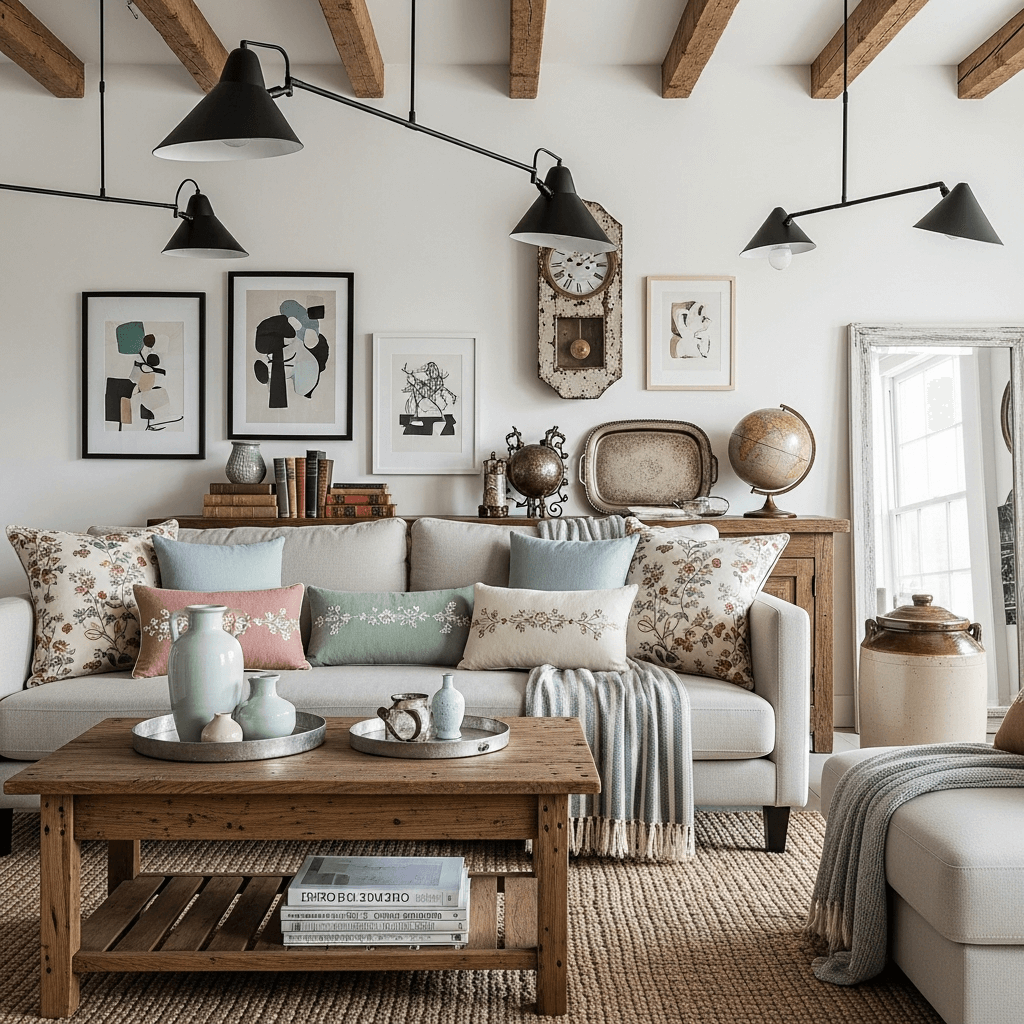 Start small. Choose one vintage piece you absolutely love and build around it. Maybe it’s an antique cabinet that anchors your room, or a vintage farm table that becomes your coffee table.