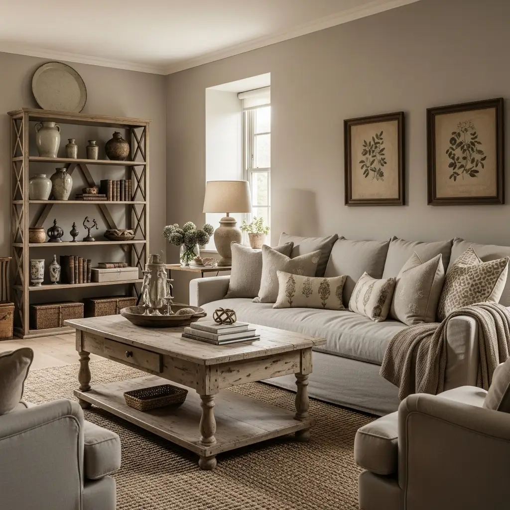 Neutral tones let vintage pieces shine without competing for attention. My living room palette runs from cream to warm gray to weathered brown, creating a cohesive backdrop that makes each vintage find stand out.