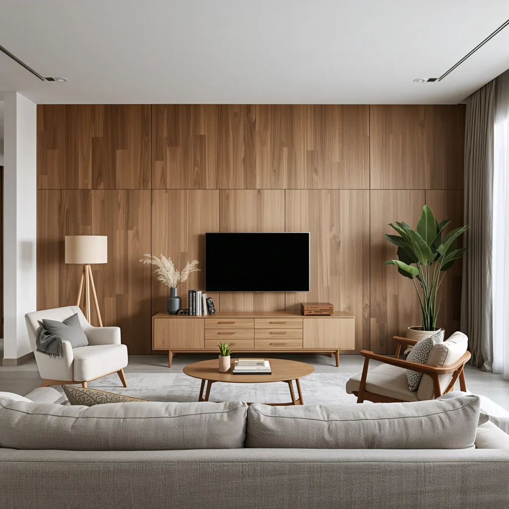 Want to add architectural interest without actual construction? Geometric wooden wall panels create depth and sophistication that paint alone can’t achieve. These bad boys transform flat walls into artistic focal points.