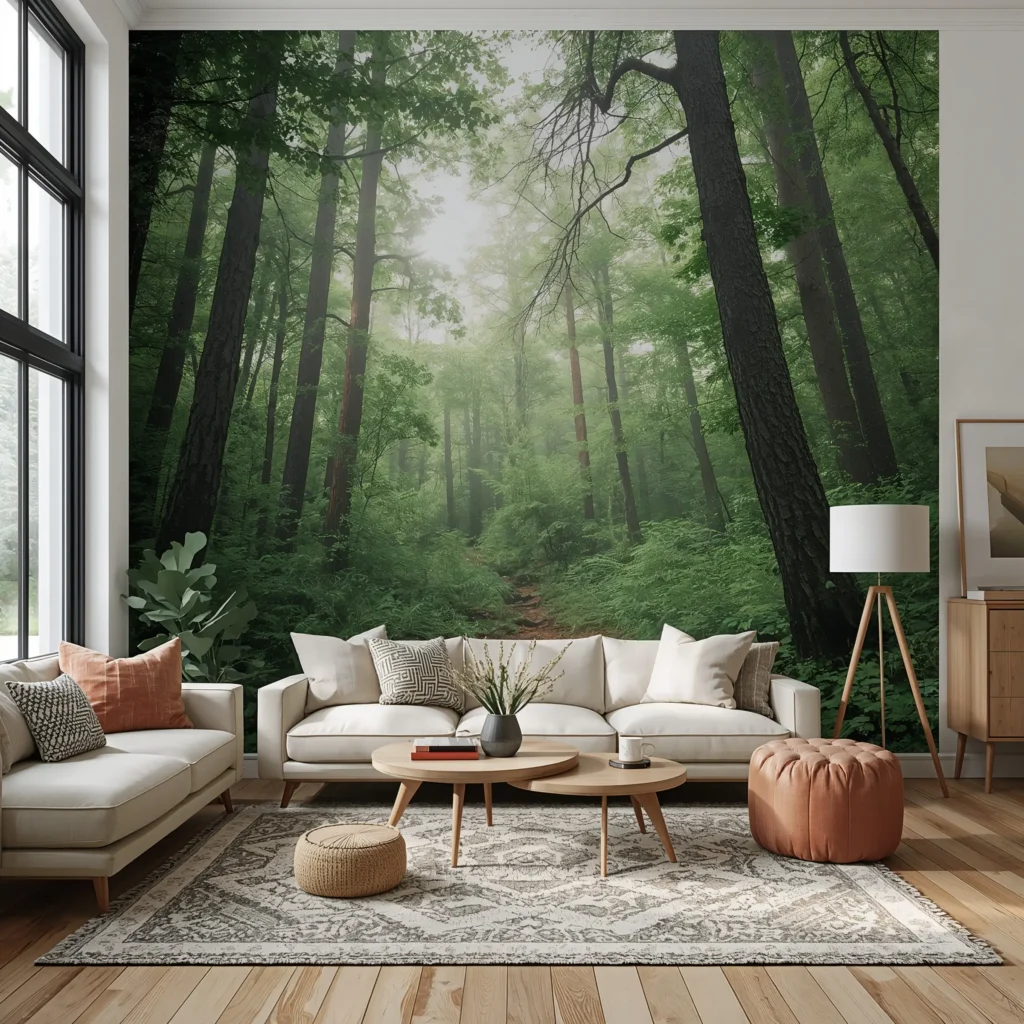 I went with a misty forest mural on my accent wall, and now my living room feels twice as big. The depth perception tricks your eye into seeing beyond the actual walls. FYI, removable wallpaper murals exist for commitment-phobes and renters 🙂
