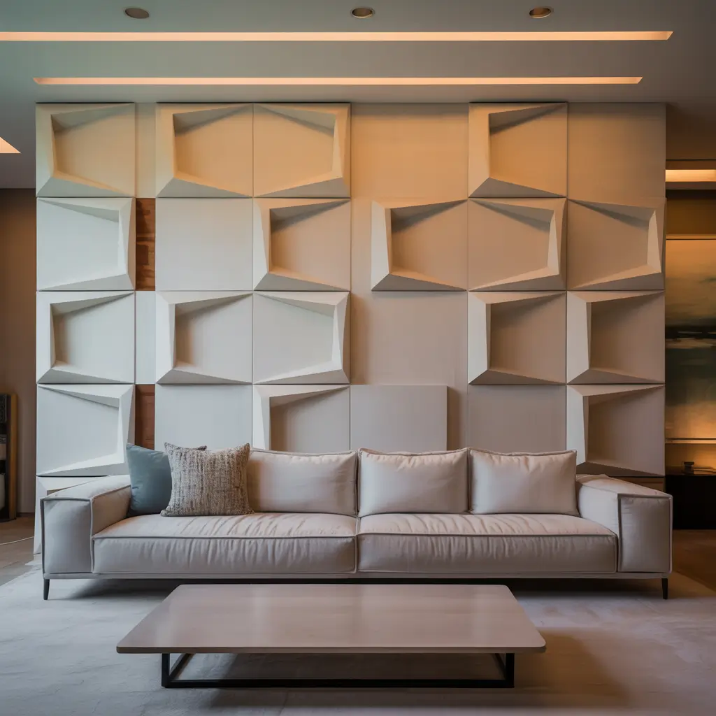 My living room features white geometric 3D panels that look completely different depending on the time of day. Morning light creates soft shadows, while evening lighting turns them dramatic. Installation takes patience, but the “wow” factor makes it worthwhile.