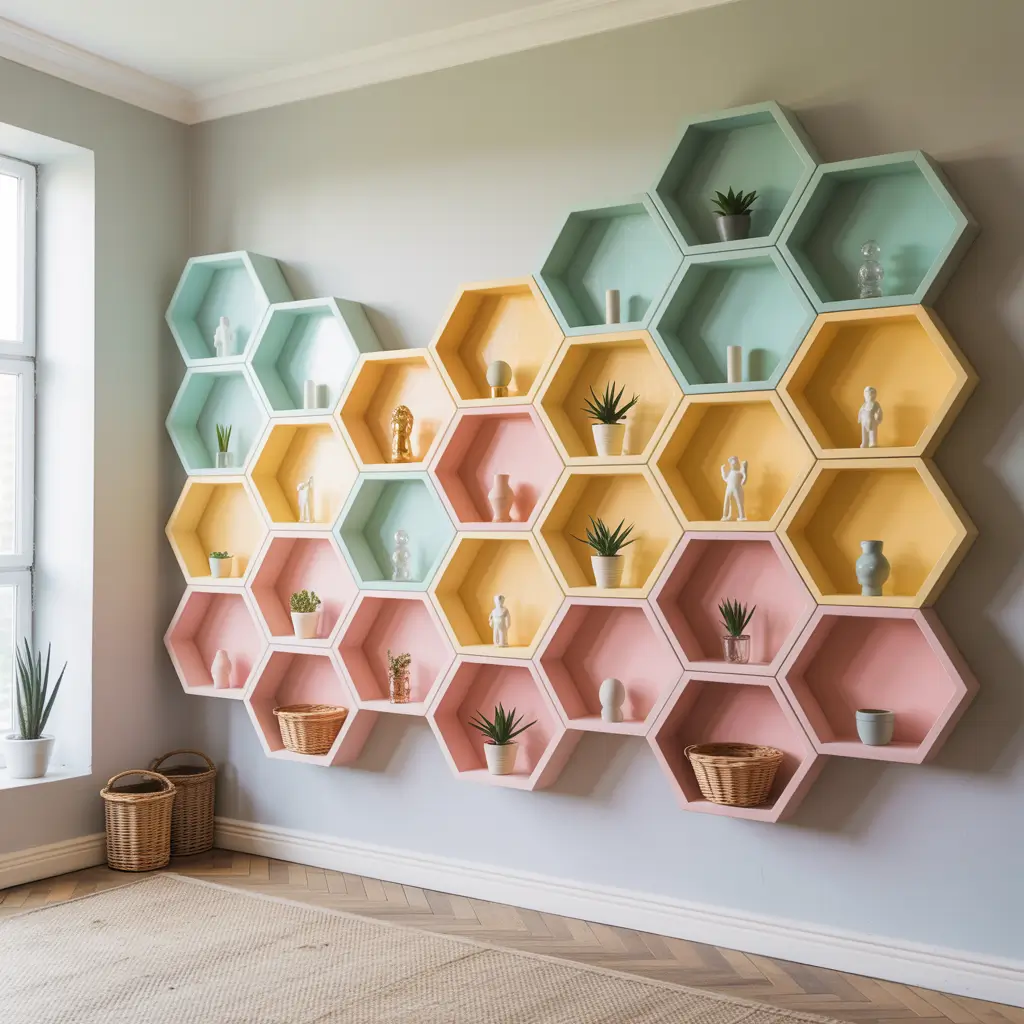 Geometric Hexagon Wall Shelves: The Honeycomb Effect