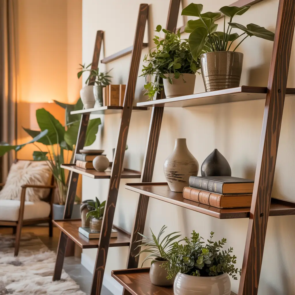 Ladder shelves lean against your wall with the confidence of that friend who’s effortlessly stylish without trying. They’re technically furniture, but they act like built-ins without the commitment. Perfect for renters or people who change their minds every six months (guilty).