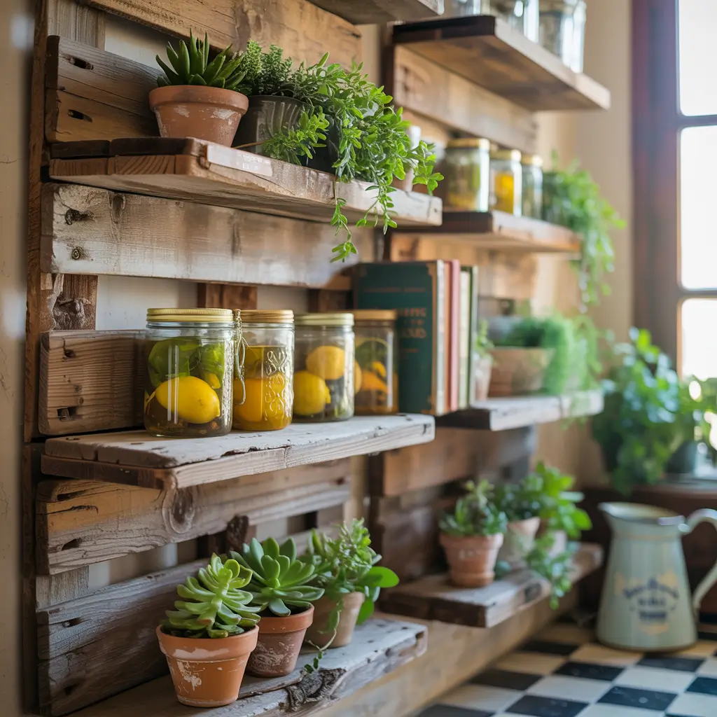 Reclaimed Rustic Pallet Shelves: The Eco-Friendly Character