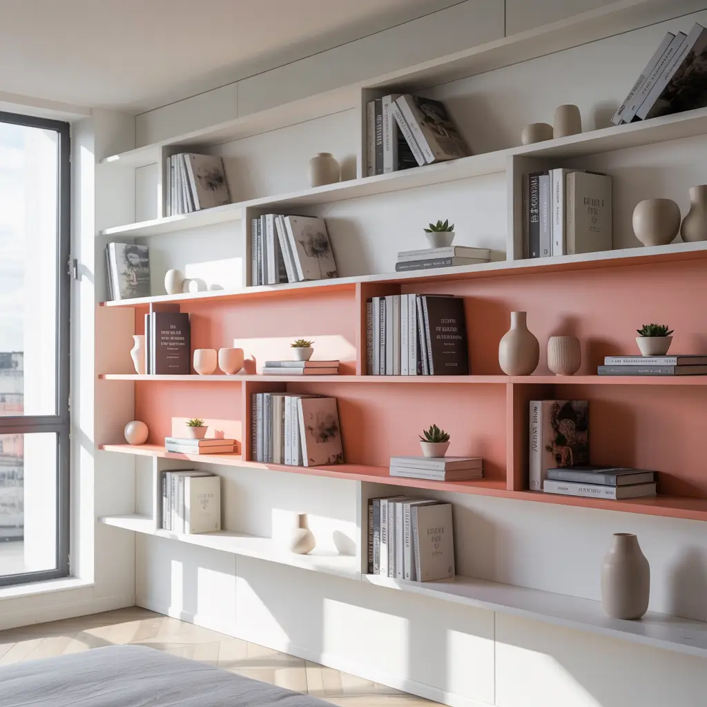 Asymmetrical shelves throw traditional balance out the window and somehow make it work. They’re perfect for people who find symmetry boring but still want things to look intentional. My asymmetrical arrangement gets more questions than any other design choice I’ve made.