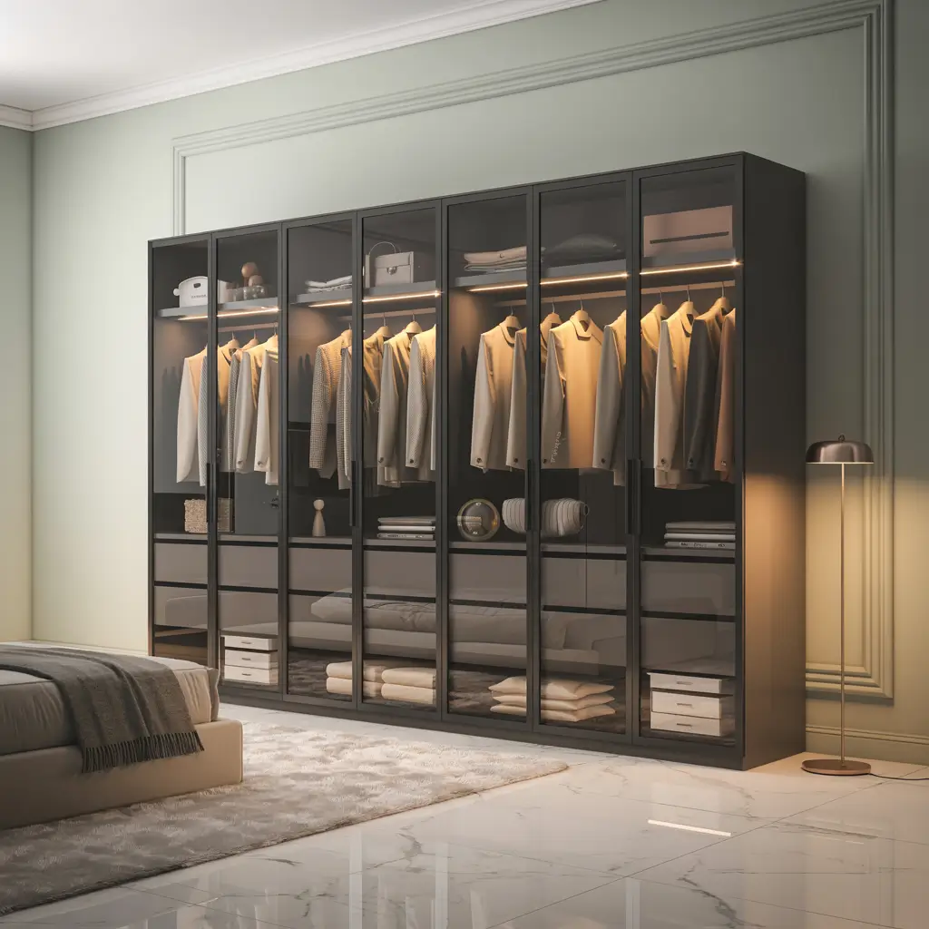 Ever thought about treating your wardrobe like a boutique display? Glass front wardrobes turn your clothes into decor. Yes, this means you actually have to keep things organized, but trust me, the motivation to maintain a beautiful closet skyrockets when everyone can see inside.
