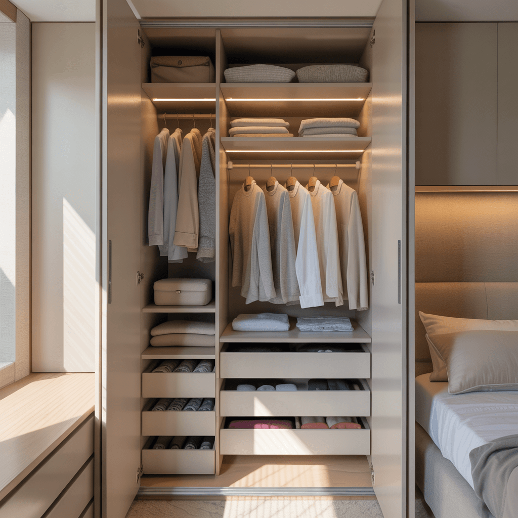 Smart space-saving wardrobe interiors taught me that you don’t need a mansion-sized closet to have an organized wardrobe. My current wardrobe is literally 3 feet wide, but thanks to smart interior design, it holds more than my previous walk-in closet ever did.