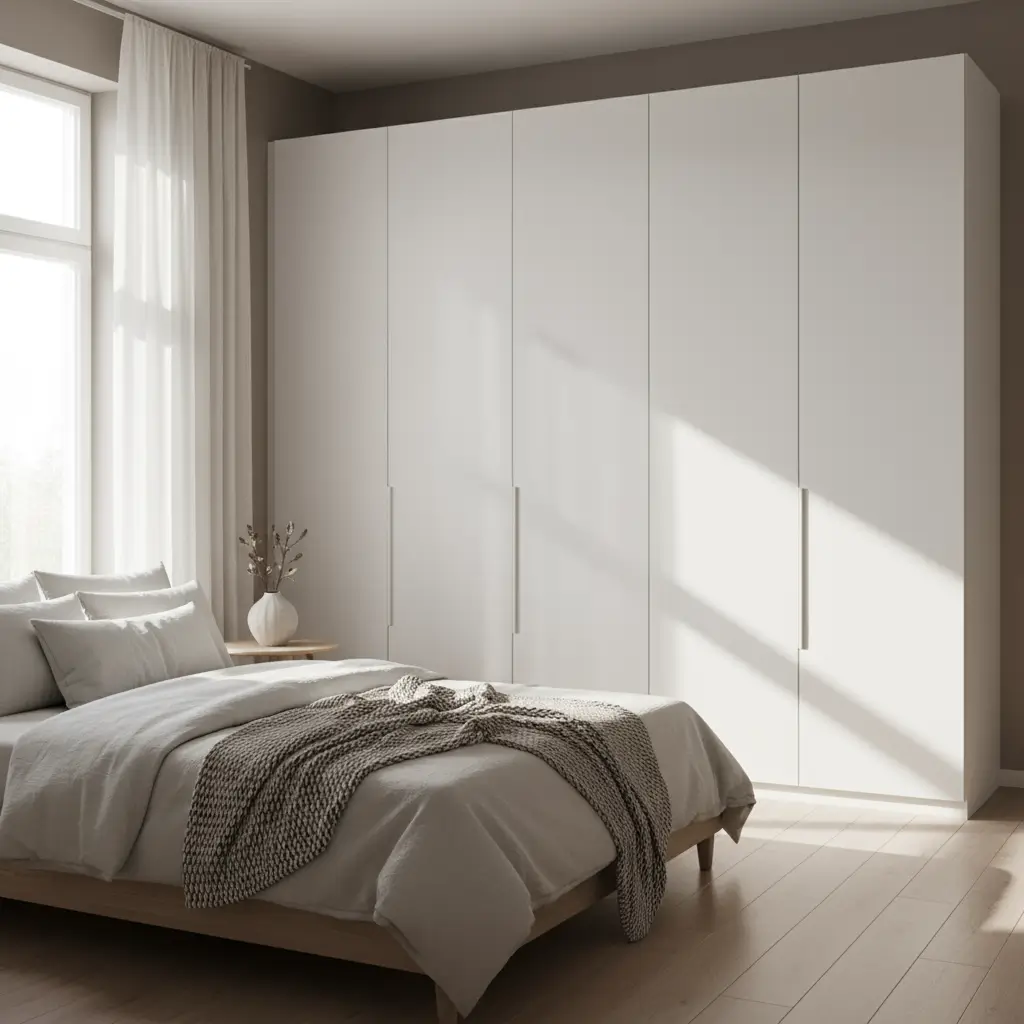 Ever notice how the fanciest hotels usually have the simplest wardrobes? There’s a reason for that. White panels create this zen-like atmosphere that makes your bedroom feel like a retreat. I installed these after my “maximalist phase” (we don’t talk about the leopard print era), and my stress levels literally dropped.