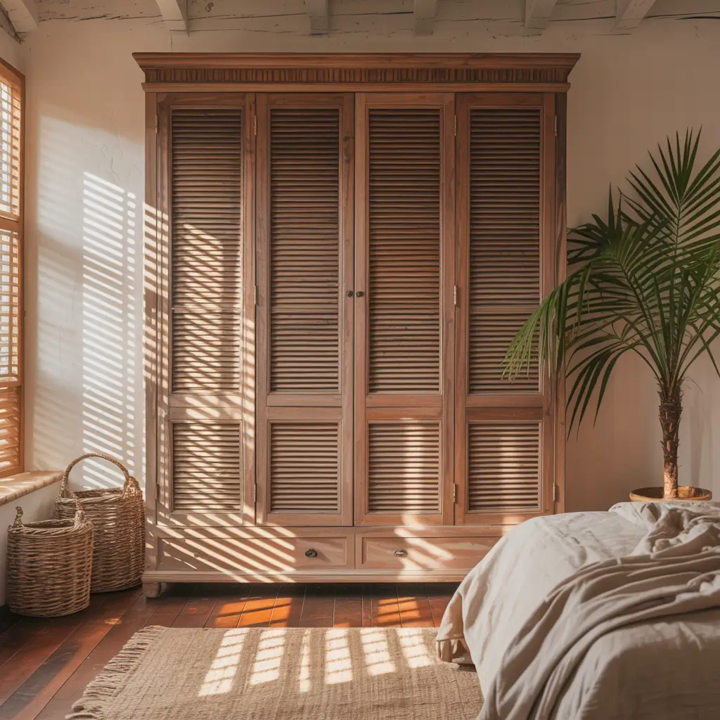 Remember that musty smell wardrobes sometimes get? Louvered shutters basically eliminated that from my life. Air circulates naturally through the slats, keeping everything fresh. I even store my gym gear in there now without fear (okay, maybe a little fear).