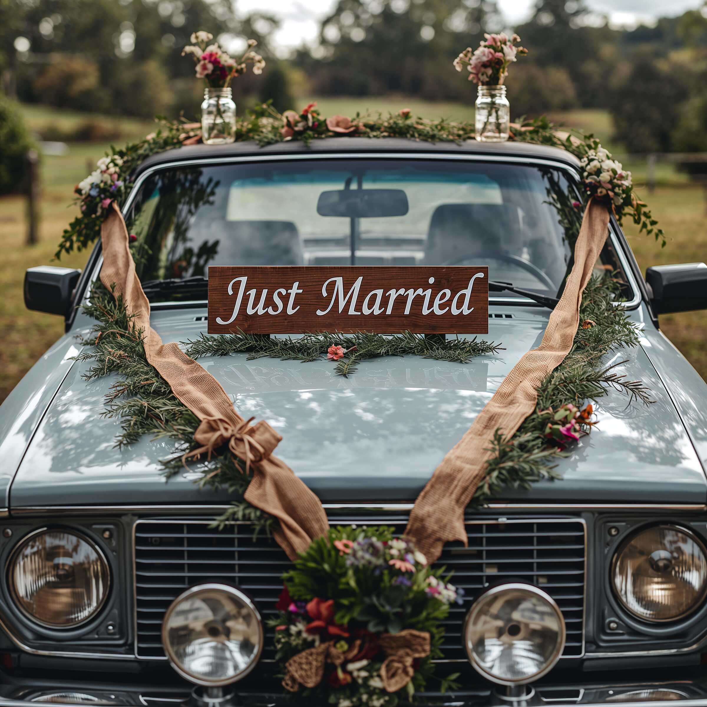 Rustic Charm Car Decorations for Weddings