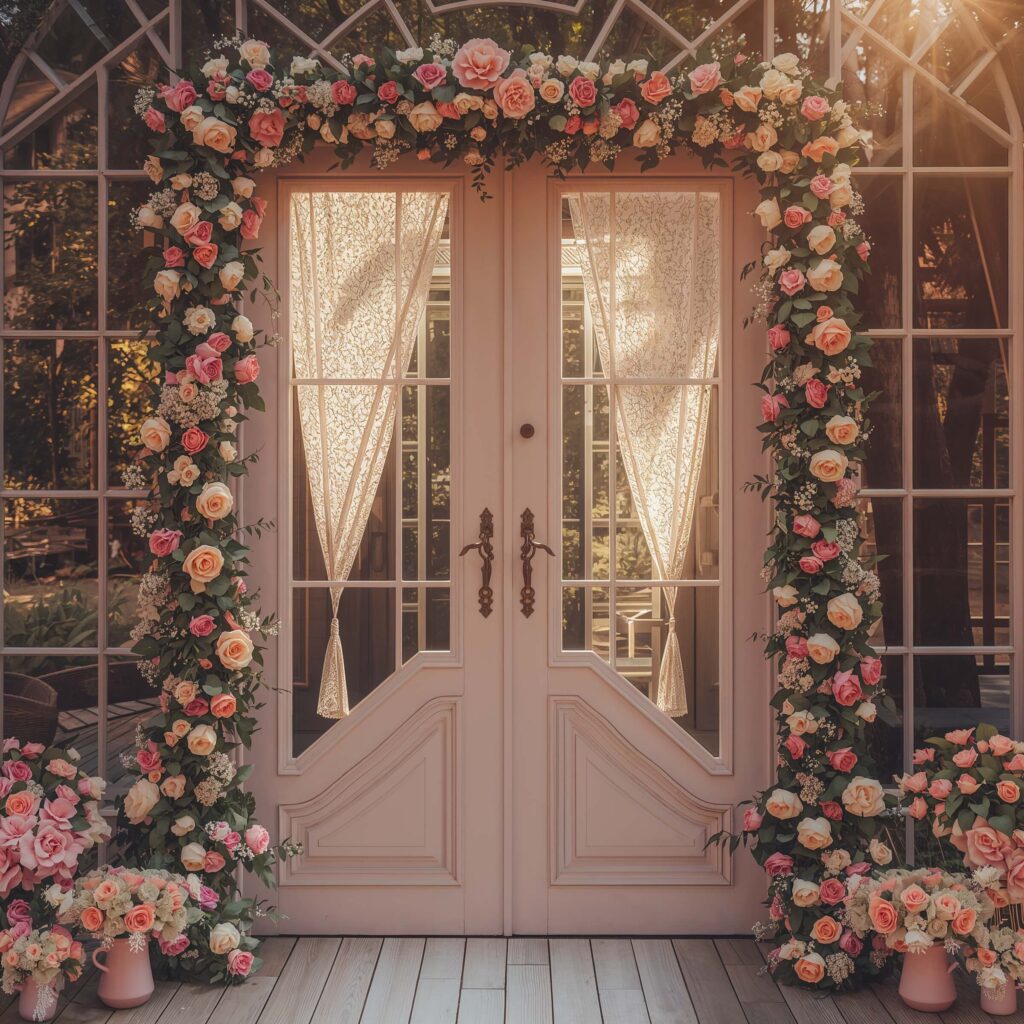 The magic happens when you style them right. A naked door frame looks incomplete; a properly decorated one becomes a portal to your celebration. Think climbing roses, cascading greenery, or even chandeliers hanging in the frame opening.