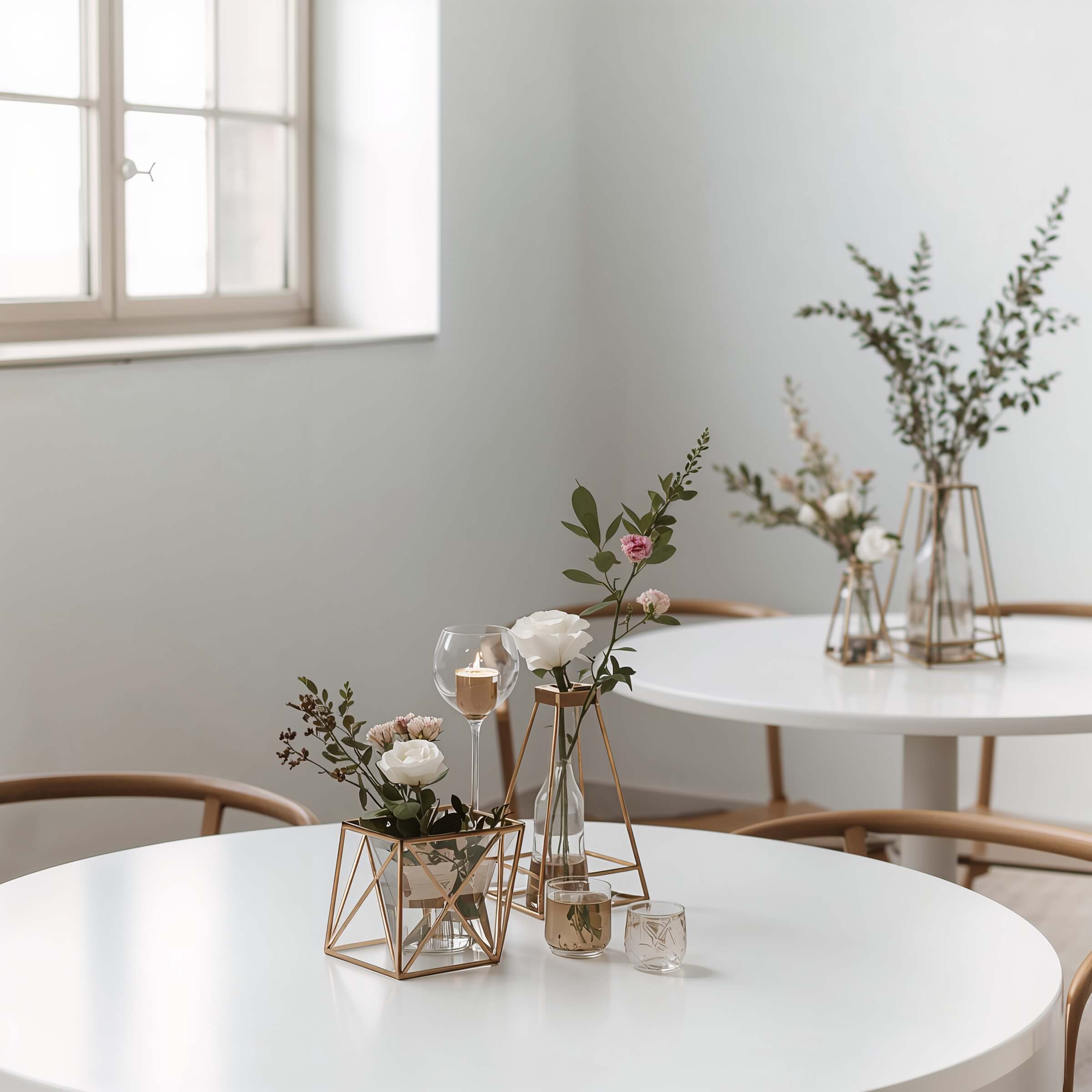 - Metallic geometric centerpiece bases
