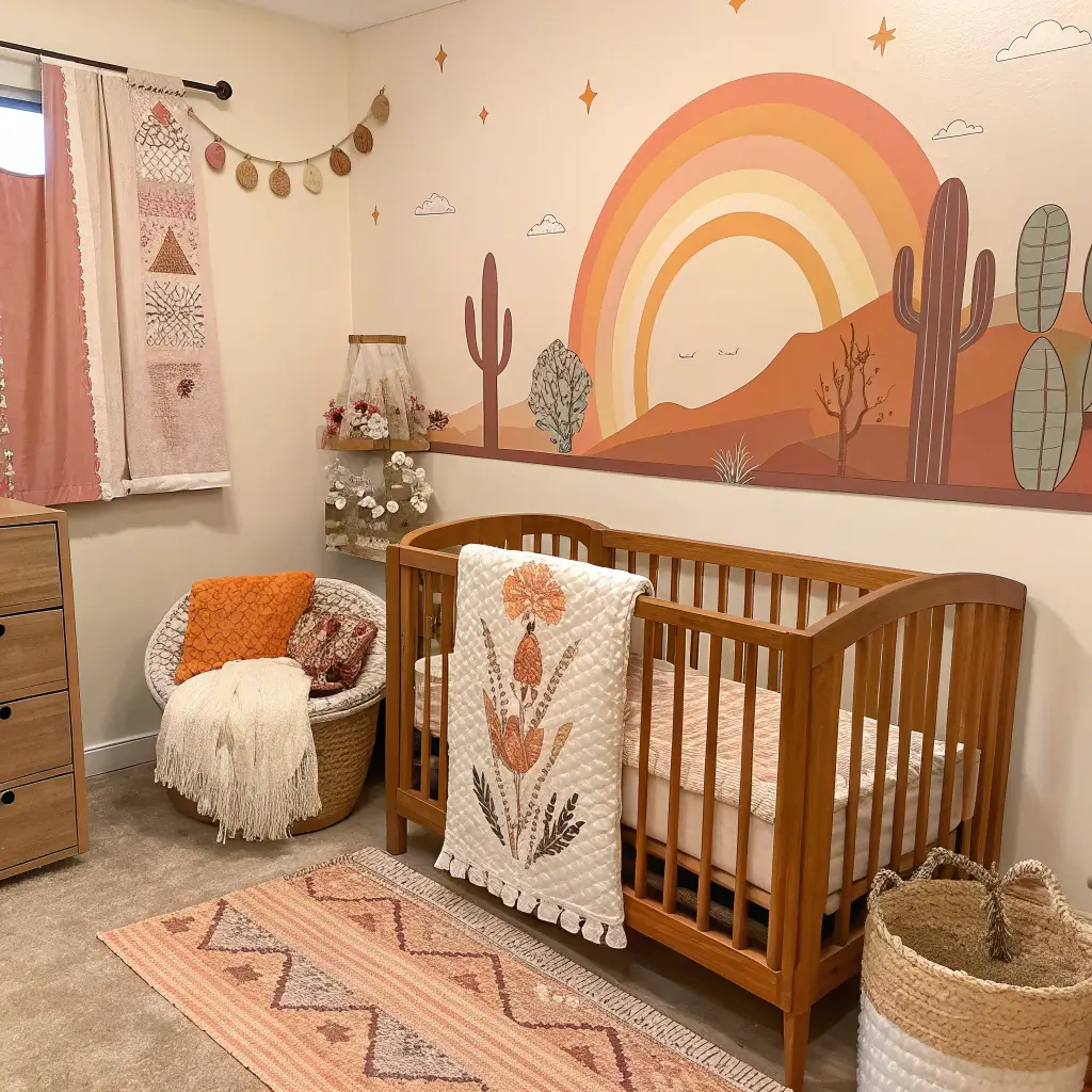 Desert sunset nurseries feel like permanent vacation. There’s something about those warm colors that makes everyone want to slow down and relax.