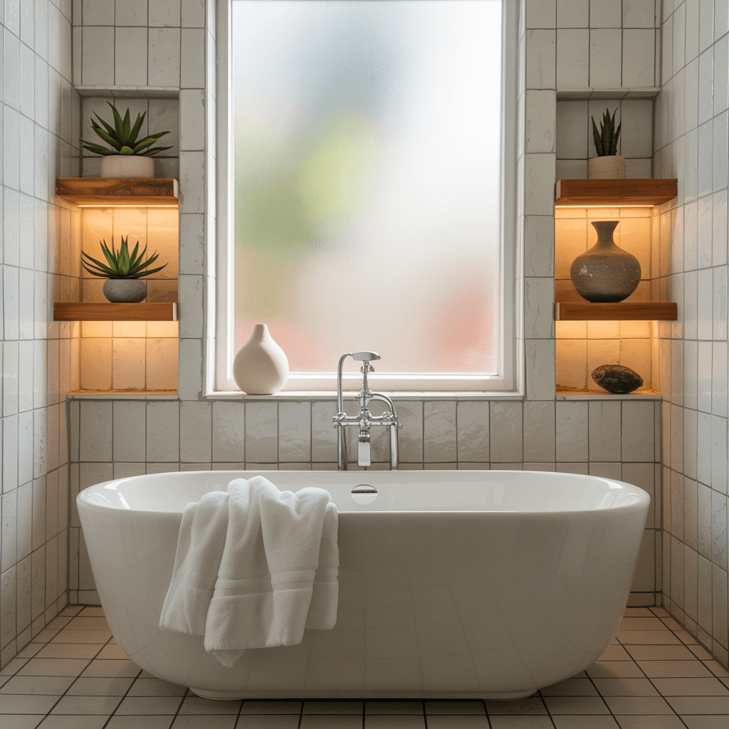 Different shades of white create depth without breaking the monochromatic scheme. Use warm whites for walls, cool whites for fixtures, and off-white for textiles. This prevents that flat, one-dimensional look that screams “builder basic.” My walls are Benjamin Moore’s White Dove, the tiles are Behr’s Ultra Pure White, and it creates just enough contrast to look intentional.